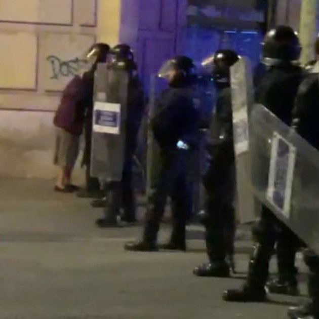 Una senyora gran que caminava per l'Eixample de Barcelona s'ha trobat amb els manifestants independentistes i el cordó policial que en aquell moment feien els Mossos.