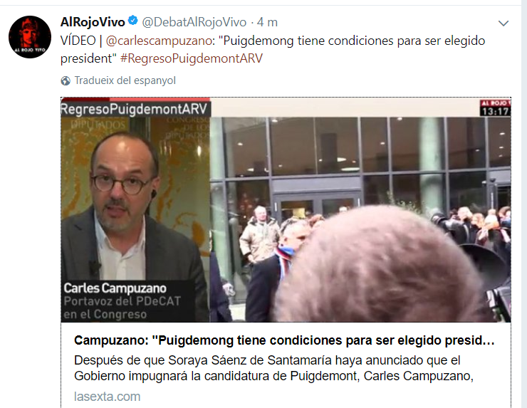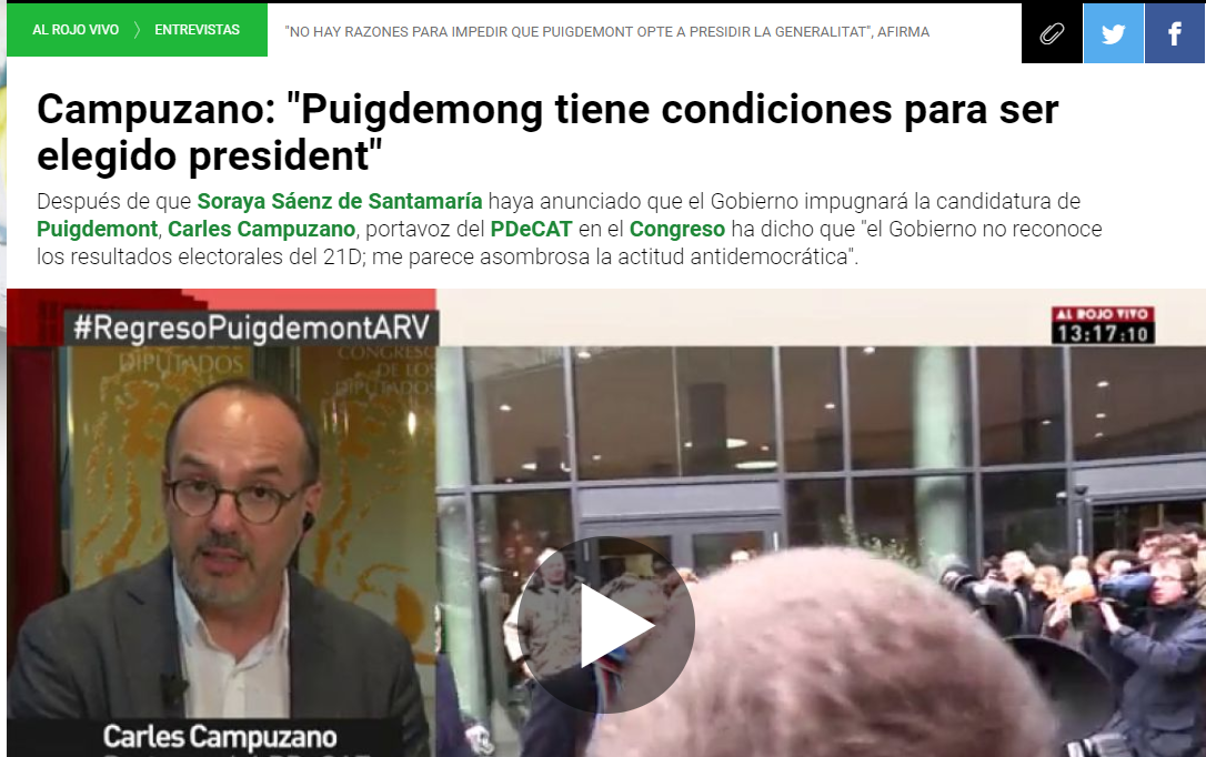 La notícia recollia unes declaracions del diputat del PDeCAT al Congrés, Carles Campuzano, on afirmava que Puigdemont té condicions per ser escollit president.