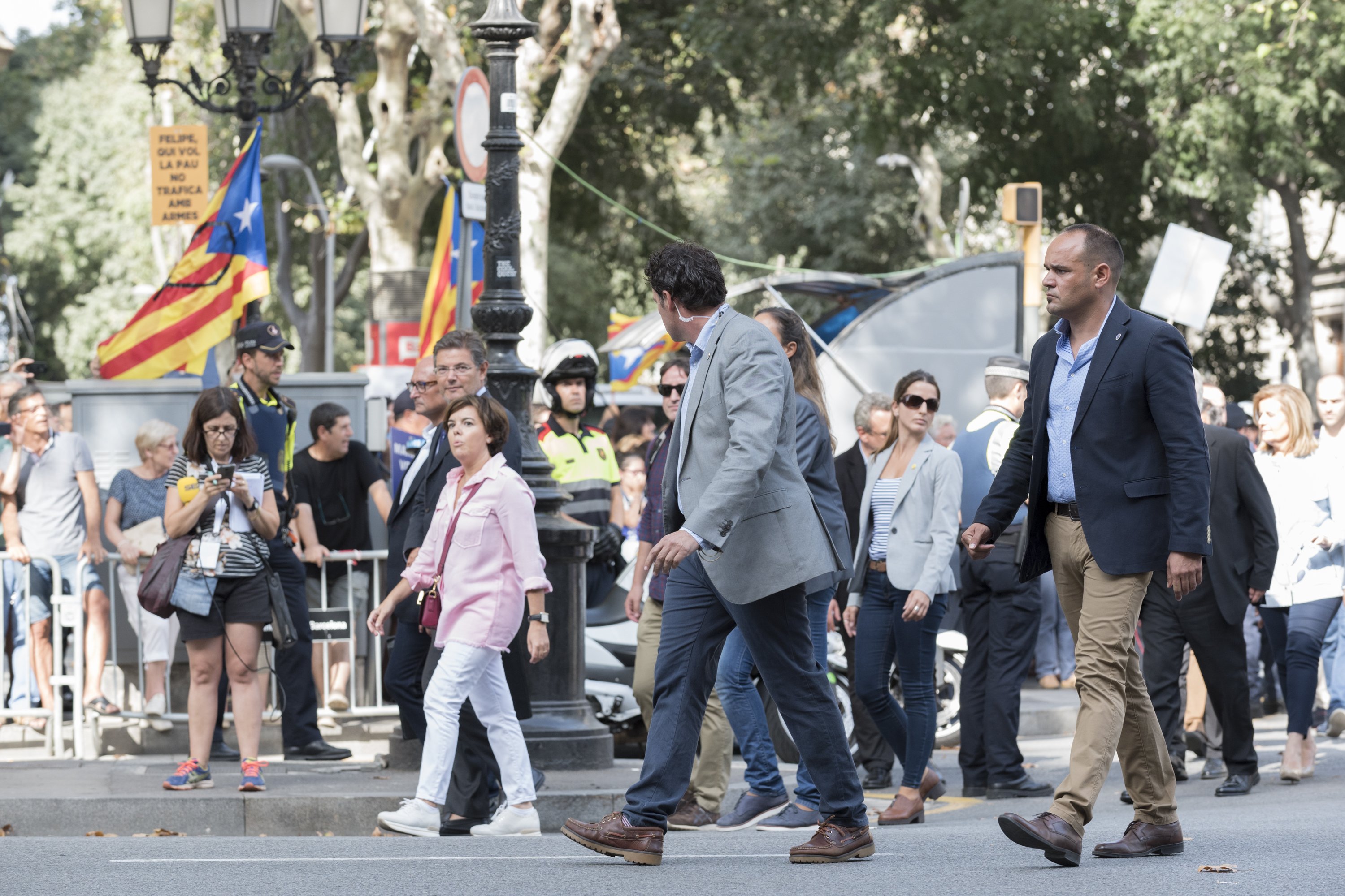 Ha estat un cop havia fet ja el recorregut, sota un sol intens, des del carrer Casp fins a la posició on s'ubicaven les autoritats a la plaça Catalunya. El delegat del Govern, Enric Millo, l'ha acompanyat fins al seu cotxe, i la número dos del Govern ha pujat al vehicle amb la ministre de Treball, Fátima Báñez, i ha marxat de l'acte. La vicepresidenta, que ha esperat al president espanyol, Mariano Rajoy, a l'aeroport per tornar a Madrid, s'ha recuperat sense problemes.