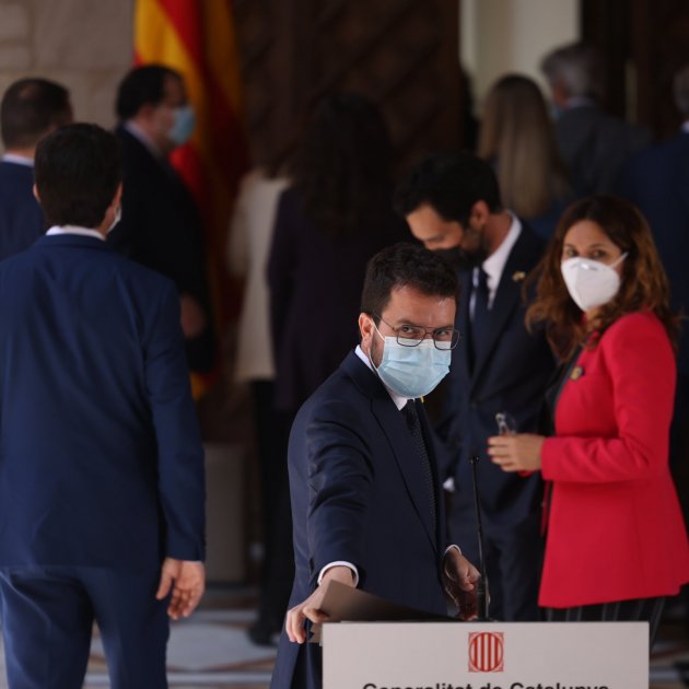 A la imatge principal, Pere Aragonès amb els seus consellers, després de la primera reunió del nou govern. / S. Alcàzar