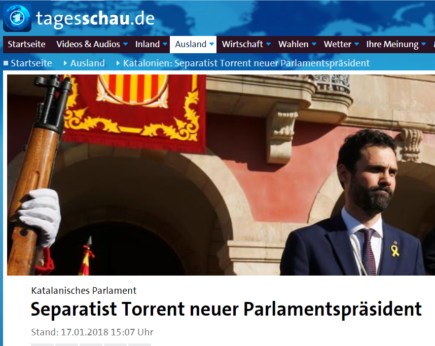 El Tagesschau, l'informatiu televisat de més audiència d'Alemanya, ha pronosticat que a finals de mes es pot intensificar el conflicte de Catalunya amb l'Estat, per la possible decisió del Parlament d'investir Carles Puigdemont com a president.