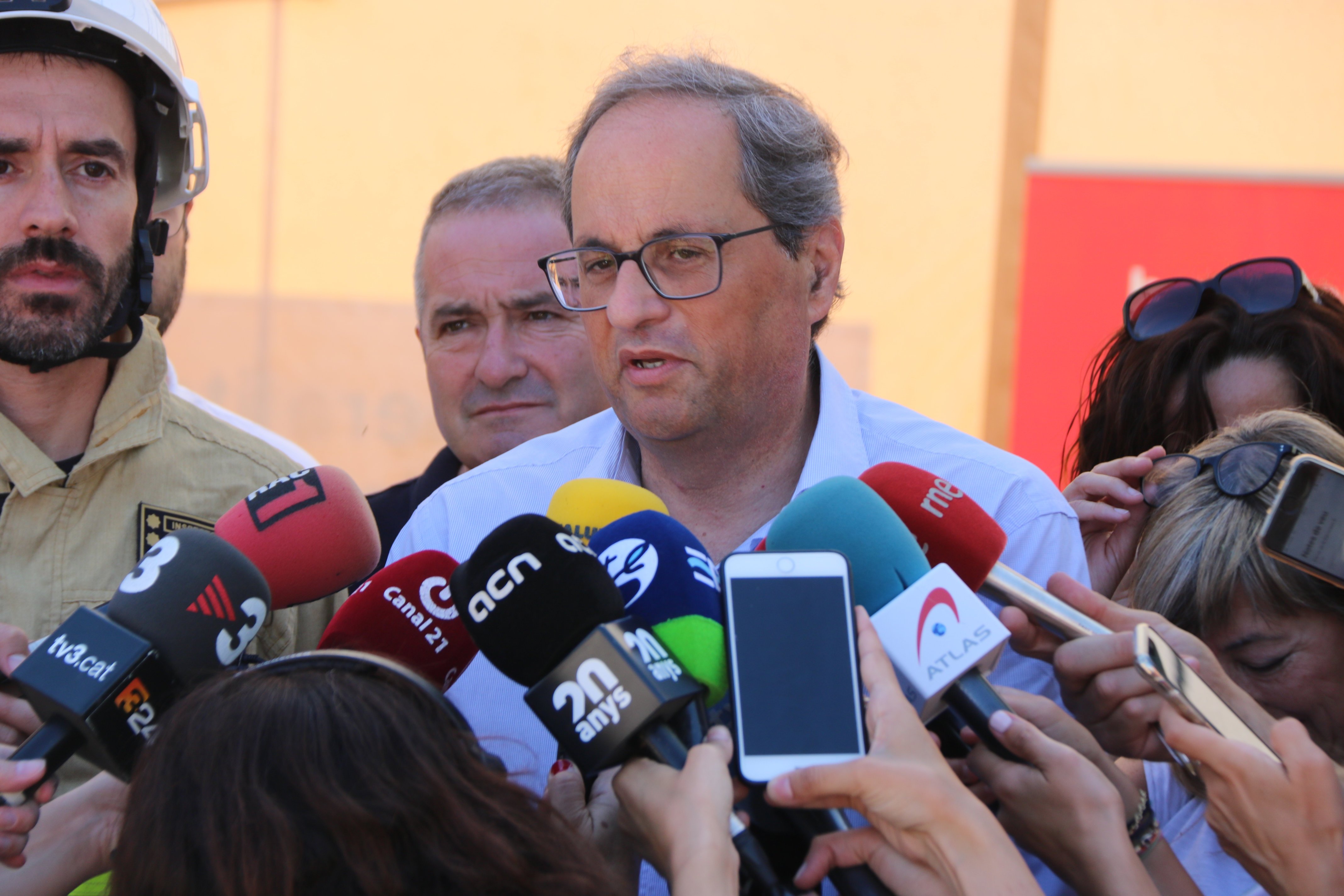 El president de la Generalitat, Quim Torra, no viatjarà demà a Estrasburg per la manifestació de l'independentisme davant el Parlament Europeu. Després de parlar-ne amb Puigdemont, i segons han confirmat fonts de la presidència, Torra ha optat per quedar-se a Catalunya pel risc de foc i per treballar en els danys de l’incendi de la Torre de l’Espanyol.