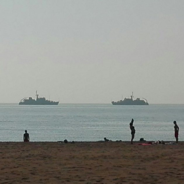Els dos caçamines de l’Armada espanyola, que han estat destinats a Barcelona en motiu de la celebració del Saló Nàutic, s’han pogut veure aquest divendres al matí davant les platges de la ciutat. Es tracta dels vaixells Segura i Sella, que aquest dies estan duent a terme batejos de mar en el context de la fira nàutica.