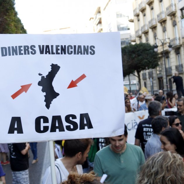 Milers de ciutadans s'han manifestat aquest dissabte a València contra l'espoli i l'infrafinançament del País Valencià, en una manifestació convocada per la Crida pel finançament, que integra centenars d'entitats, sindicats i partits polítics.