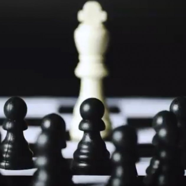 El vídeo representa una partida d'escacs on els peons fan pinya per fer un 'escac i mat' al rei.