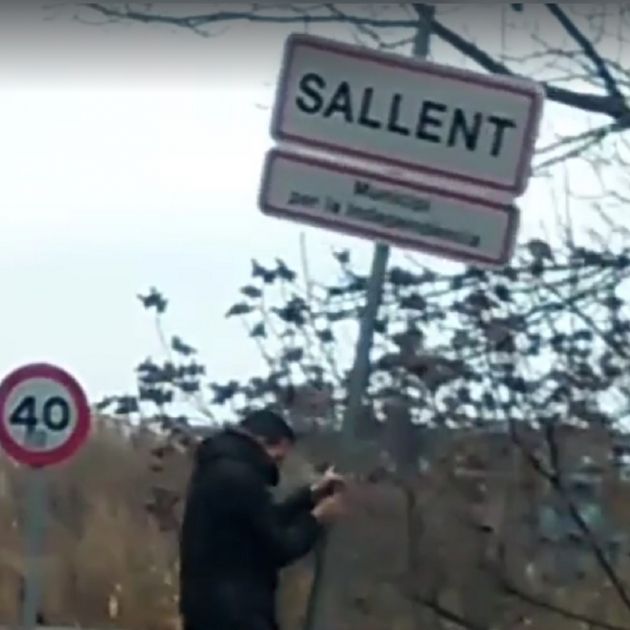 Així queda demostrat en un vídeo que circula per les xarxes socials, on es veu el jove insistint repetidament en l’intent d’arrencar el cartell fins que ho aconsegueix, i seguidament el llença lluny de la carretera. Aparentment, l’autor de la gravació estava a la vista mentre el jove atacava el cartell i per tant podria actuar en connivència amb ell.