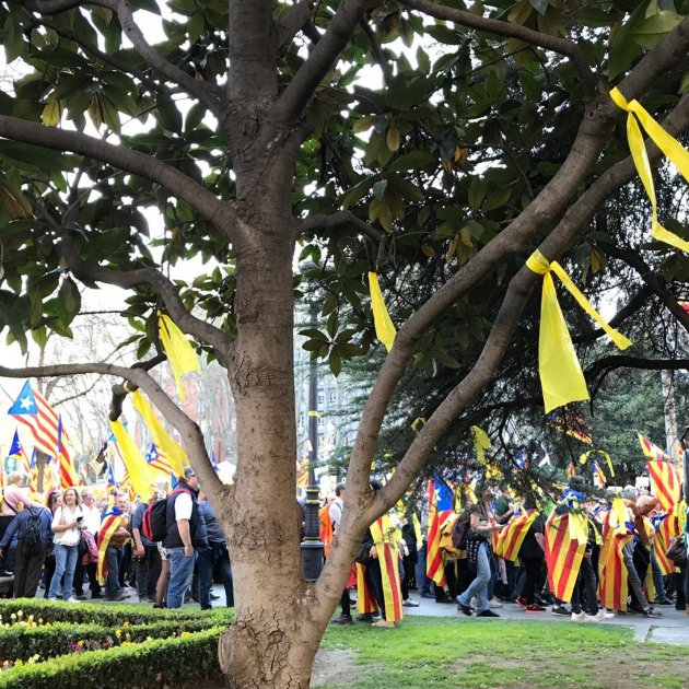 "Hem vingut a acomiadar-nos", cridaven els manifestants a la manifestació independentista a Madrid. La reivindicació ha tingut un to festiu i distès.