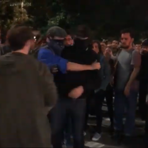 Tot i que s'han viscut alguns moments de tensió i encaraments amb altres manifestants, l'home ha acabat abandonant la zona. Era un home de complexió alta i corpulent, vestit de negre i amb un buf tapant-li tota la cara, deixant-se veure només els ulls.