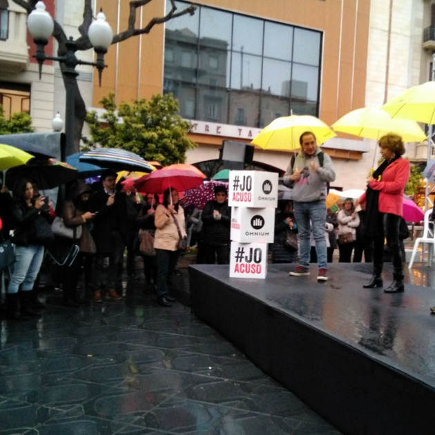 Òmnium ha omplert aquesta tarda sota la pluja un acte a Tarragona, en defensa dels presos polítics i exiliats. L'acte de Jo acuso s'ha celebrat amb un mar de paraigües oberts, després que el públic no ha volgut marxar.