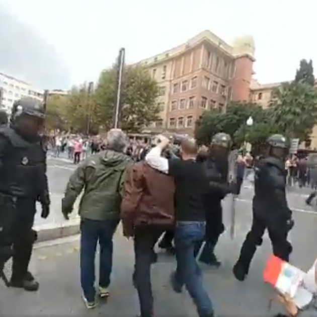 El president d'ERC a Tarragona, Sergi Albarran, ha estat ferit aquesta tarda durant les càrregues de la Policia Nacional a la ciutat per aturar el referèndum. Mentre dos companys l'ajudaven a marxar del lloc dels fets per buscar ajuda mèdica, amb el cap obert i sagnant, la policia ha tornat a agredir-los.