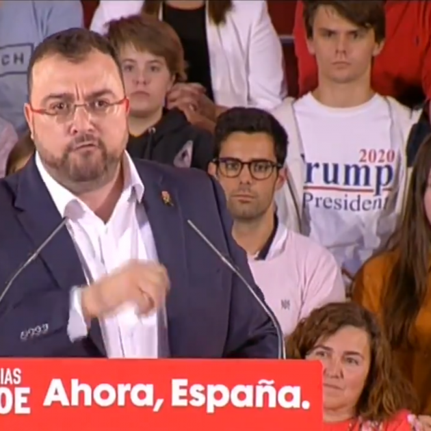 El gir a la dreta del PSOE ha tret el cap aquest divendres en un acte de precampanya del partit socialista a Oviedo. Durant el discurs d'Adrián Barbón, president del Principat d'Astúries, les càmeres han captat com un jove s'ha descobert una samarreta a favor del president xenòfob, masclista i homòfob dels Estats Units, Donald Trump.