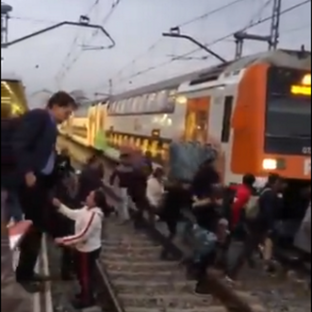 L'escena de catalans passant per vies de tren tallades s'ha tornat a veure avui, però no ha estat per cap actuació dels CDR a les vies de l'AVE, sinó per una nova avaria de Rodalies.