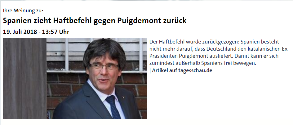 La notícia sobre la retirada de l'euroordre contra el president Carles Puigdemont a la web del telenotícies Tagesschau de la televisió alemanya s'ha col·lapsat per l'inusual nombre de comentaris que ha rebut, la gran majoria d'ells a favor del mandatari català.