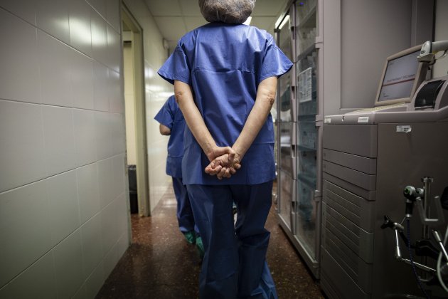 Una sanitària durant una de les operacions quirúrgiques que no ha pogut ser cancel·lada; tot i això, l'activitat no urgent dels quiròfans s'ha ajornat a causa del coronavirus. / Foto: Sergi Alcàzar