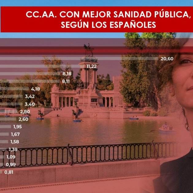 Un estudi realitzat per l'Institut IO Investigació indica que un de cada quatre espanyols, el 26,01%, pensa que Madrid és la comunitat amb la millor sanitat pública, seguida pel País Basc (20,60%) i Catalunya (11,22%), una percepció que a Madrid s'eleva al 28,90% en el cas dels ciutadans d'entre 45 i 54 anys, el grup de població en el qual obté millor valoració.