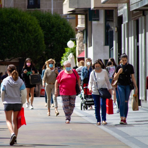 Foto principal: Un grup de persones passeja pel carrer amb la mascareta posada / Europa Press