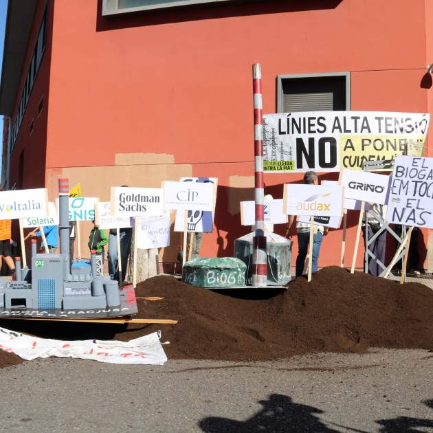 Unes 1.400 persones, segons els Mossos d'Esquadra, i 2.000, segons l'organització, s'han manifestat aquest diumenge a la ciutat de Lleida contra els macroprojectes energètics i en defensa dels municipis rurals i l'equilibri territorial. La manifestació, convocada per 16 entitats, ha començat a les 11 del matí des de la plaça Ricard Vinyes i ha aplegat persones de les comarques de Lleida, les Terres de l'Ebre, l'Anoia i el Penedès. Els protestants han fet camí per Prat de la Riba cap a la seu del departament d'Agricultura, on han abocat sacs de compost i matèria orgànica en una acció de rebuig a les empreses que promouen iniciatives energètiques. La manifestació ha seguit el seu recorregut per la ciutat després d’aquest acte i ha acabat davant de la delegació del Govern, on s’ha llegit el manifest i s’han fet parlaments per part de les entitats convocants, que han reclamat a l’executiu català una moratòria dels projectes que hi ha en marxa actualment per denunciar una “colonització dels espais agraris”.