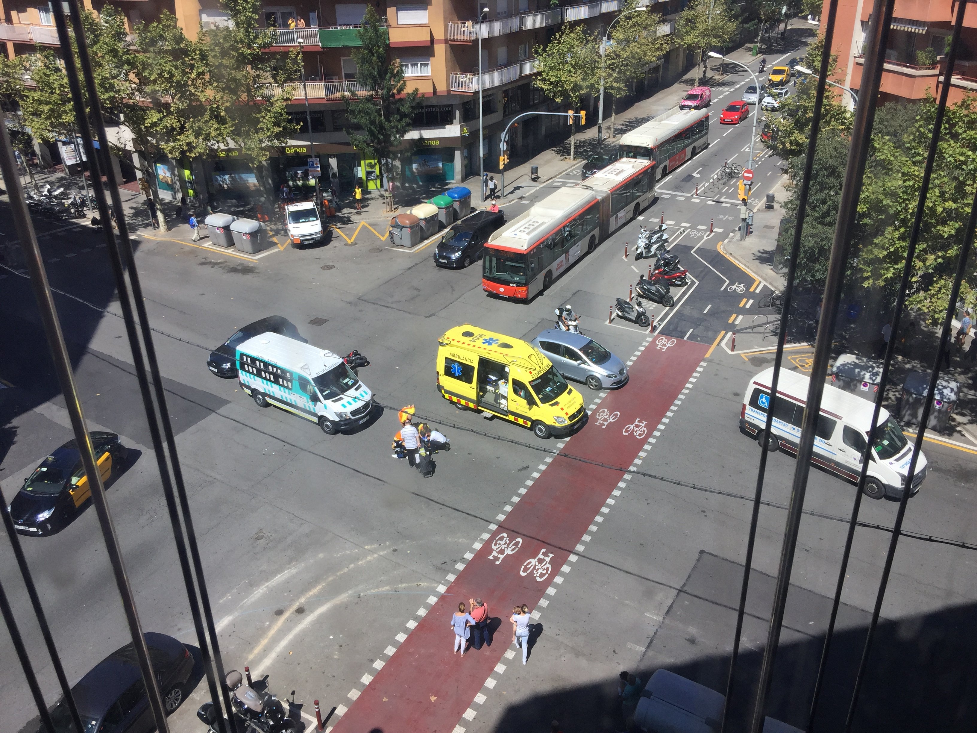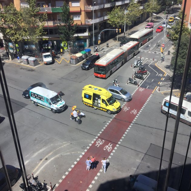 Un motorista de 53 anys ferit menys greu en un accident entre una moto i un cotxe a l'encreuament del carrer Numància amb Berlín. El motorista ha estat traslladat a l'Hospital Clínic i el conductor del cotxe ha resultat il·lès.