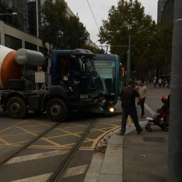 Accident a la Diagonal prop de Glòries entre un camió i un tramvia #bcn pic.twitter.com/ADyuUS6pc7