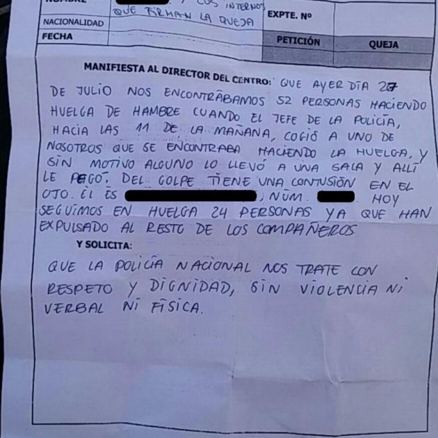 Els interns asseguren que eren les 11 del matí i mentre un grup de 52 persones estava fent vaga, un dels agents va agafar un dels que protestaven, el va portar a una sala i el va agredir. L'home té una contusió a l'ull, segons recull la queixa dirigida al director del centre.
