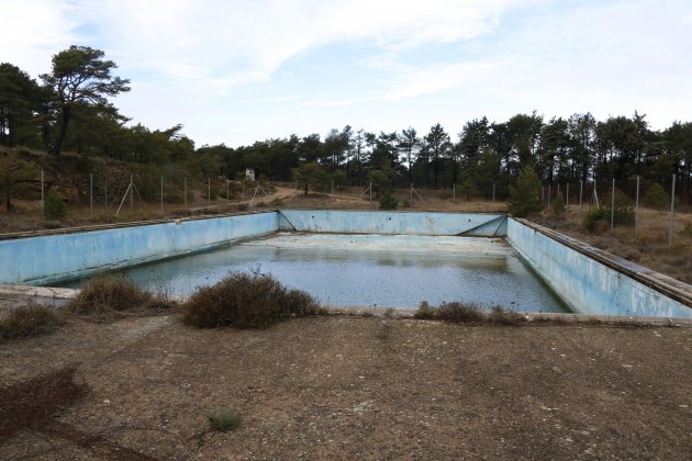 Piscina, mig buida d'aigua i degradada, de l'antic campament militar de Los Castillejos / ACN
