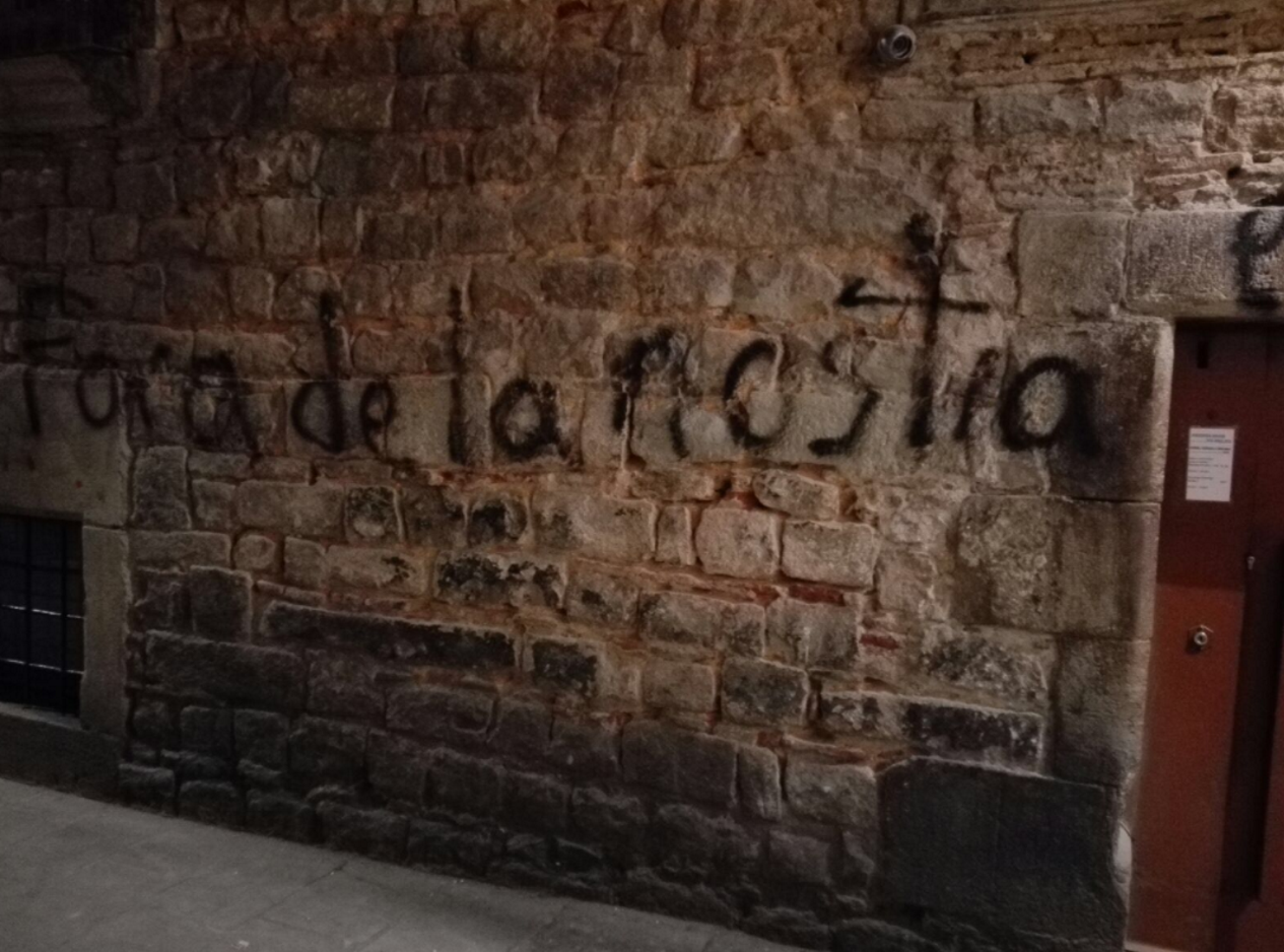 Pintades antijueves han aparegut al call de Barcelona, concretament a la porta de l'antiga sinagoga. Una de les pintades diu "Fora de la nostra terra" en català, i una altra diu en anglès "pigs" (porcs), un animal considerat impur per al judaisme. Les pintades no estan signades.
