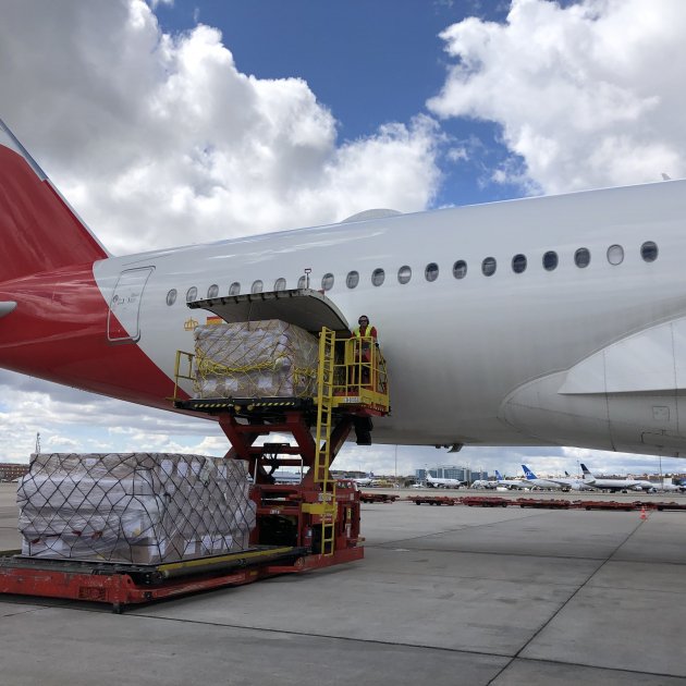 El Ministeri de Sanitat ha anunciat que cap a dos quarts de tres de la tarda d'aquest dijous ha aterrat a l'aeroport de Barajas, a Madrid, un avió amb 12,5 tones de material sanitari procedent de Xangai.