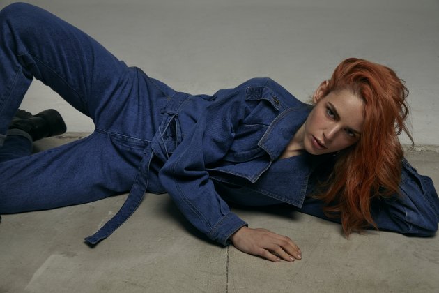 La model Sara Vela vestint una peça de Bluyins / Lea Farren