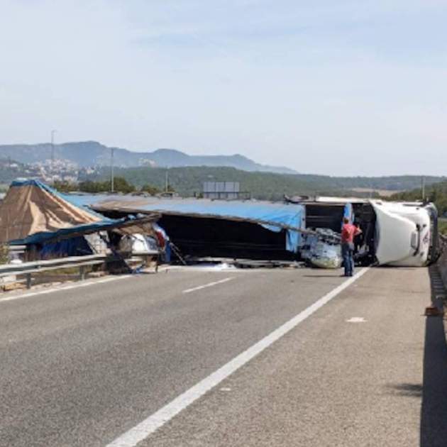 Un espectacular accident a la C-32 d’un camió que transportava líquid corrosiu, i que ha quedat bolcat ocupant tota la calçada en sentit Barcelona, ha obligat a tallar la via en els dos sentits de la marxa a l’altura de Sant Pere de Ribes, al quilòmetre 26. L'accident ha passat minuts abans de les 14 hores i, poc després, el Servei Català de Trànsit ha informat que s’estan fent desviaments per les calçades laterals, el que està evitant que es produeixin retencions molt importants. Més tard, el trànsit s'ha desviat en tots dos sentits per les sortides nord i sud de l'enllaç 26 (Sitges Oest). El camió ha quedat bolcat en sentit Barcelona, però la càrrega del vehicle ha caigut en sentit Tarragona. Finalment, passades les 20 hores s'ha reobert la C-32 a Sant Pere de Ribes en sentit sud, amb un carril tallat.