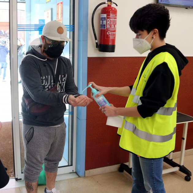 Prop de 300 condemnats a treballs comunitaris compleixen la pena fent tasques de prevenció de la Covid-19. S'encarreguen de gestionar els accessos de diferents equipament per garantir que es respecti la distància de seguretat i dispensar mascaretes i gel hidroalcohòlic.