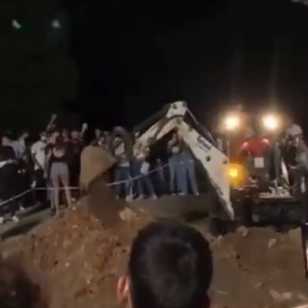 Foto principal: assistents del macrobotelló a la UAB fent servir una màquina excavadora / @jor_iron via Twitter