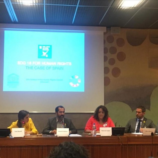 Txell Bonet considera que l’empresonament del president d’Òmnium Cultural, Jordi Cuixart, no s’ha d’entendre com un problema exclusiu català sinó com una vulneració de drets humans, ha explicat la companya de Cuixart, en el marc de la 39a sessió del Consell de Drets Humans de les Nacions Unides, on hi han participat també el jurista expert en dret internacional, Nico Krisch, i la periodista Patricia López.