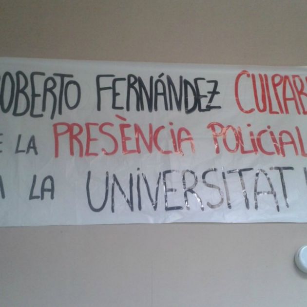 Arran dels fets, una jove, estudiant de Comunicació Audiovisual, ha estat detinguda pels Mossos d'Esquadra. Posteriorment, un grup d'estudiants s'ha tancat al rectorat per reclamar parlar amb el rector, Roberto Fernández, i l'alliberament de la noia detinguda, que ha tingut lloc aquest vespre.