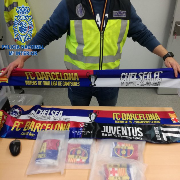 La Policia Nacional ha detingut aquest dimecres cinc persones que venien productes falsificats del FC Barcelona i del Chelsea, coincidint amb el partit que va enfrontar els dos equips a la capital catalana. Els nois, d'origen neerlandès, compraven per internet les falsifiacions de la Xina i les feien entregar a una empresa de logística de Barcelona, que no té res a veure amb la trama.
