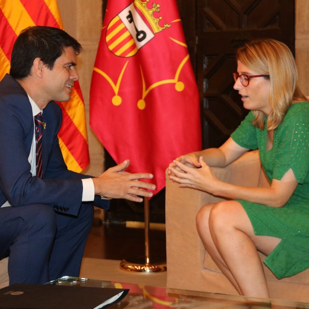 La consellera de la Presidència i portaveu del Govern, Elsa Artadi, i el president de la Diputació de Barcelona, Marc Castells, s’han reunit aquest divendres al Palau de la Generalitat per abordar aspectes sobre el finançament dels ajuntaments, en especial sobre el programa dels projectes FEDER 2014-2020.