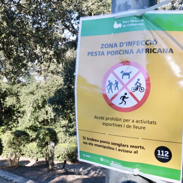El contagi pot ser per contacte directe amb altres porcs o porcs senglars infectats, però també per contacte amb objectes o restes contaminades. Des de les soles de sabata o les rodes del cotxe fins a les restes d'un entrepà. És per aquest motiu que les autoritats catalanes han tancat l'accés a les zones afectades. Aquest diumenge es van desplegar 300 efectius per evitar que els ciutadans entressin en els espais naturals de Collserola on l’accés estava prohibit, i avui dilluns s’incorporen una vuitantena d'agents de la Unitat Militar d'Emergències (UME) per augmentar la vigilància i ajudar en les tasques de contenció de la plaga de porcs senglars. “No estem aquí per posar multes, sinó que estem aquí per senyalitzar, per informar i per dir que estem en alerta sanitària”, ha afirmat Ordeig.