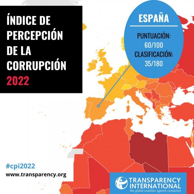 L'Índex de Percepció de la Corrupció (IPC) 2022, publicat per Transparency International, revela escassos avenços contra la corrupció en un món cada vegada més violent i conclou que Espanya s'estanca en la prevenció i lluita contra aquesta xacra. L'esmentat IPC classifica 180 països i territoris segons els seus nivells percebuts de corrupció al sector públic, mesurat a través de dades obtingudes de 13 fonts expertes externes, en una escala de zero (molt corrupte) a 100 (molt transparent).