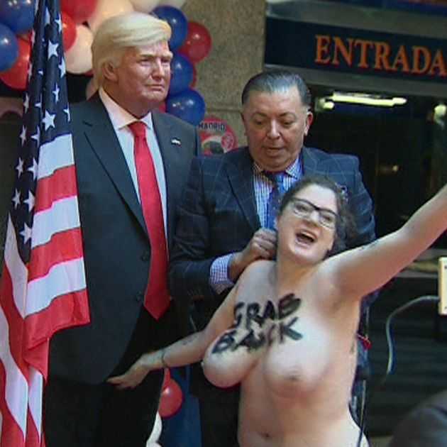 L’arribada de la figura del president electe dels Estats Units, Donald Trump, al museu de cera de Madrid, s’ha vist interrompuda per l’actuació d’una activista de Femen, que a pit descobert ha aprofitat la presència de mitjans de comunicació per protestar contra el patriarcat.
