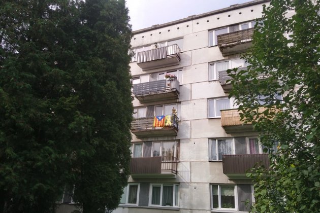 Imatge de Bogotá, Colòmbia, amb una estelada al balcó.