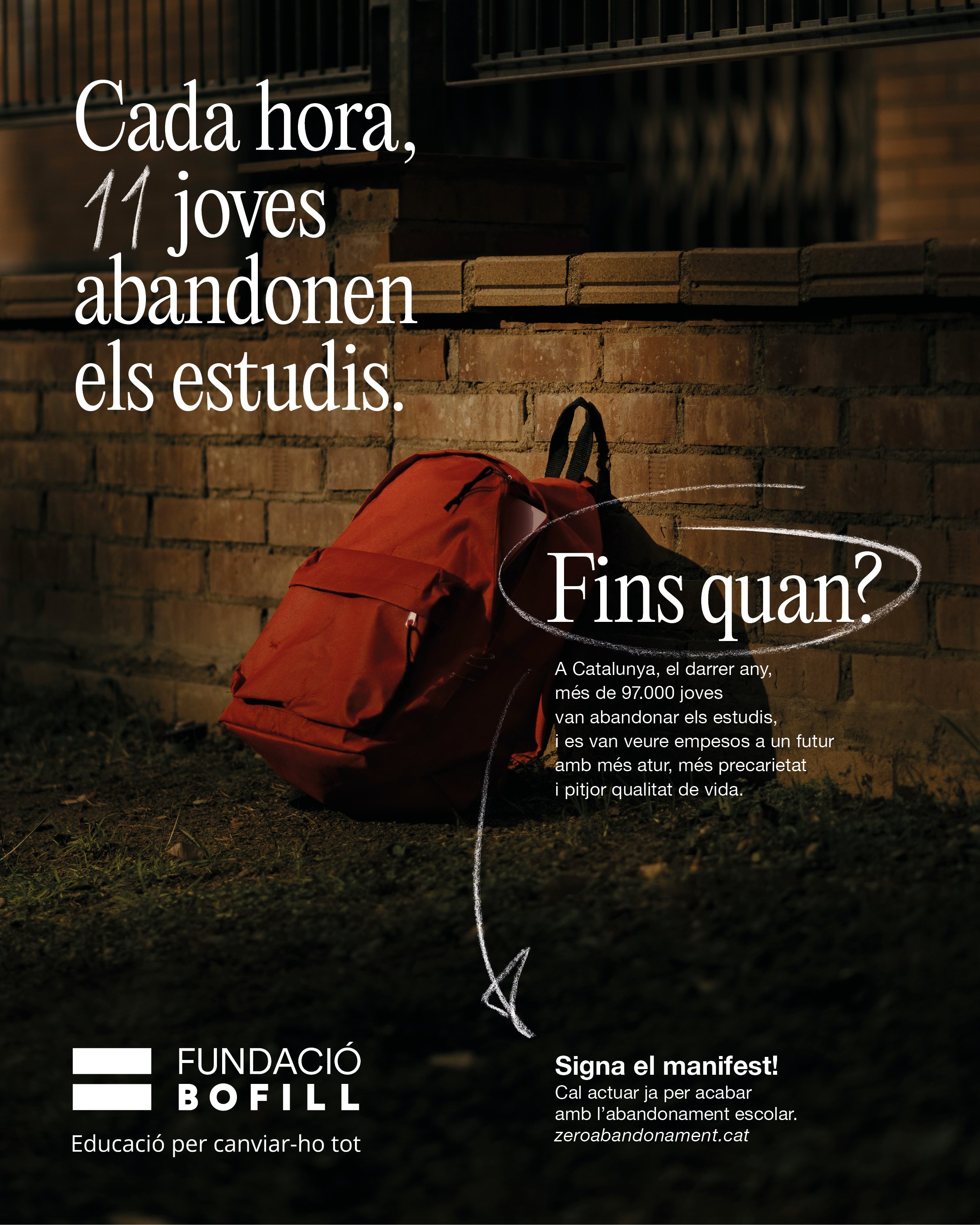 La Fundació Bofill ha denunciat aquest dilluns que l’abandonament escolar a Catalunya està estancat en uns nivells que “no es poden normalitzar”. En aquest sentit, recorda que l’any passat 97.000 joves catalans d’entre 18 i 24 anys no tenien cap titulació més enllà de l’ESO ni estaven estudiant. A més, la taxa és el doble entre els joves d’origen migrat o de famílies amb baix nivell d’estudis respecte a la resta d’estudiants. L’entitat reclama impulsar un pla de xoc contra l’abandonament escolar que permeti en el termini d’una legislatura “situar Catalunya per sota de l’objectiu europeu del 10%”. Per això, la Fundació ha engegat una campanya social i un manifest reclamant que s’abordi la problemàtica que afecta cada any milers de joves.