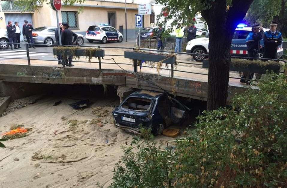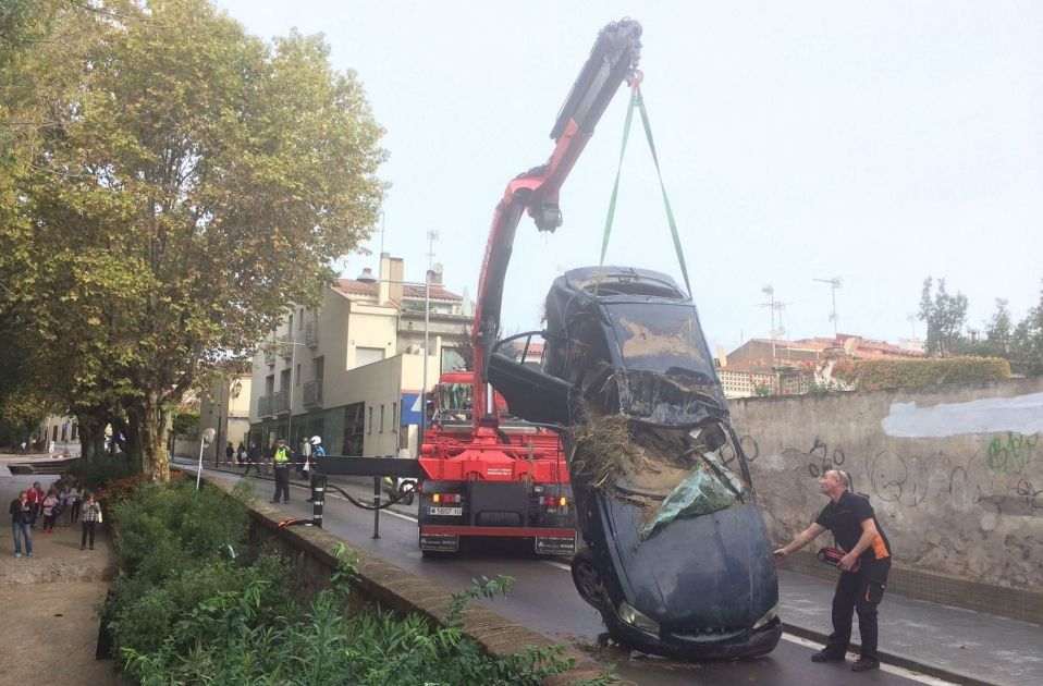 Els forts xàfecs, a més de milers d'afectats, van causar la mort d'un home que va quedar atrapat en el seu cotxe quan intentava creuar la riera, aquest és el moment en què retiraven el cotxe després d'haver recuperat el cos la nit anterior.