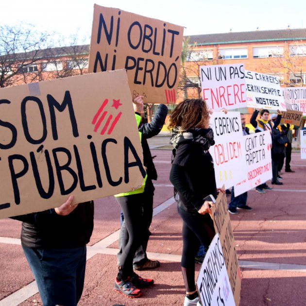 Una vintena de persones s'ha concentrat aquest dilluns al matí amb pancartes contra la violència dels cossos estatals davant dels jutjats, on els Mossos han establert un important dispositiu de seguretat que limitava l'accés a la zona.
