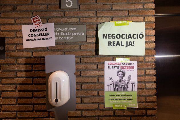 Cartells que els sindicalistes van enganxar a les parets durant l'ocupació d'Educació / Foto: Sergi Alcàzar