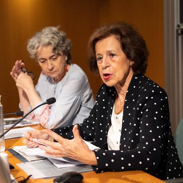 A la foto principal, la magistrada Rosa Maria Virolés i la catedràtica Julia López, en la jornada de la Societat Catalana d'Estudis Jurídics, aquest divendres. / Foto: Miquel Muñoz