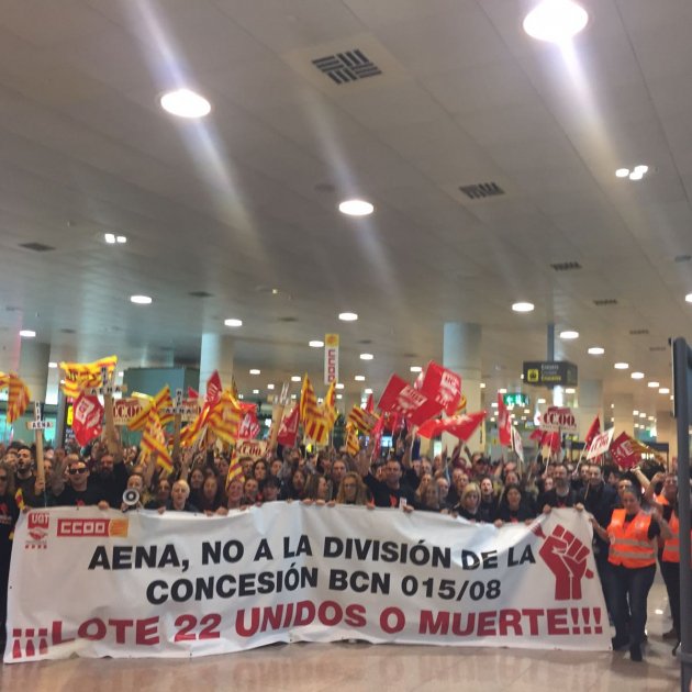 La mateixa escena s'ha repetit a l'aeroport del Prat, on s'han manifestat un grup de treballadors dels restaurants de l'aeroport sota lemes com "Bote, bote, Aena quien no bote" i "El pueblo unido jamás será vencido". Els treballadors es troben en vaga perquè, segons apunten els organitzadors, AENA ha dividit la concessió dels restaurants en sis parts, fet que ha trasbalsat les condicions dels treballadors i que condiciona fins a 400 famílies.