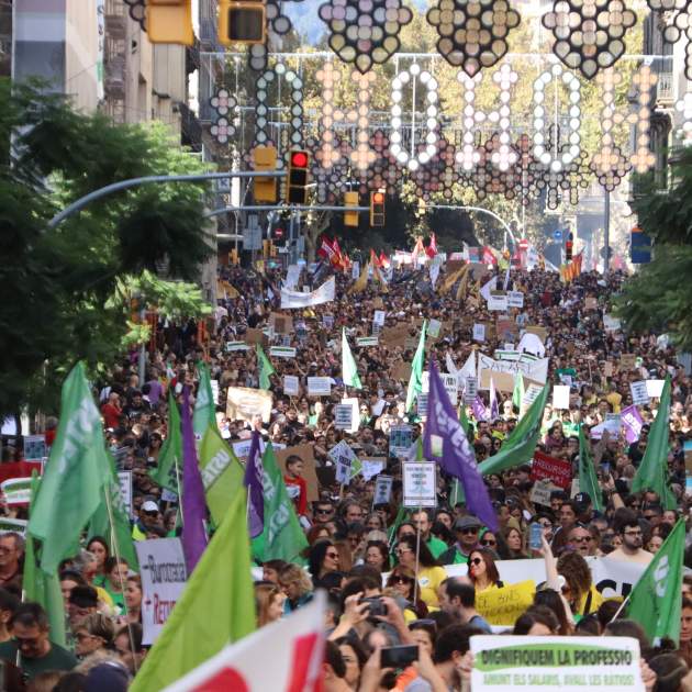 El sector de l’educació travessa moments difícils i els docents ja han dit prou, ofegats per aules saturades, càrregues de treball desbordants, pèrdua de poder adquisitiu insostenible, i per això aquest dissabte han sortit al carrer per demanar millores laborals. Unes 30.000 persones, entre docents, personal d’atenció educativa, estudiants, famílies i ciutadania, han sortit al carrer aquest dissabte per demostrar el seu malestar i proclamar les seves reivindicacions, tot i que la Guàrdia Urbana ha rebaixat la xifra fins als 8.500 participants. En qualsevol cas, ha estat “un èxit rotund”, afirmen els organitzadors, i el recorregut per la Via Laietana entre la Plaça Urquinaona i Sant Jaume s’ha omplert de gom a gom, superant totes les previsions dels sindicats convocants: USTEC·STEs (IAC), Professors de Secundària (ASPEPC·SPS), CCOO Ensenyament, CGT Ensenyament i UGT Ensenyament, amb el suport de 20 associacions. Amb el lema “Ja n’hi ha prou!”, els impulsors de la protesta condensen les principals reivindicacions: “Més salari, més recursos, menys burocràcia, menys ràtios”. Els sindicats han coincidit a qualificar la jornada com una fita històrica i han anunciat que el conflicte s’intensificarà durant els pròxims mesos i, fins i tot, alguns portaveus han afirmat que el sector anirà a la vaga si no hi ha avanços reals i ràpids.