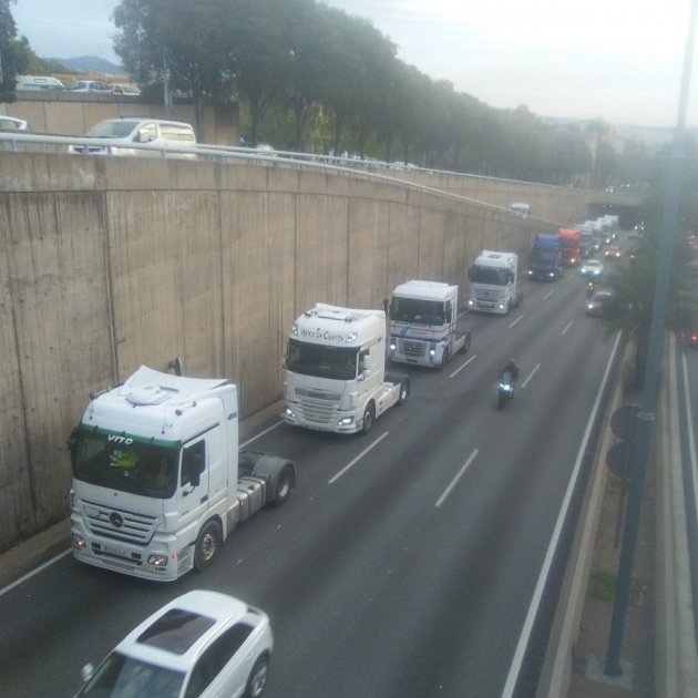 Les rondes de Barcelona, tant la del Litoral com la de Dalt, s’han col·lapsat com a conseqüència de la marxa lenta de transportistes del port de Barcelona convocada per l’associació de transportistes Sintraport.