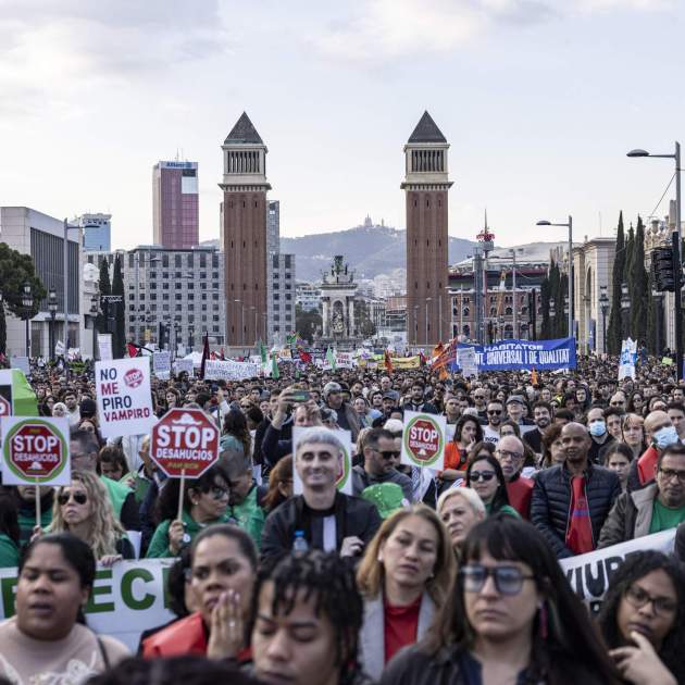 Milers de persones han omplert diversos carrers de Barcelona aquest dissabte a la tarda per reivindicar el dret de l’habitatge i reclamar una baixada d'un 50% del preu dels lloguers. Els participants han mostrat el seu rebuig als fons voltor i l’especulació immobiliària arran de la convocatòria del Sindicat de Llogateres, que ha organitzat mobilitzacions similars a una quarantena de ciutats de l'estat espanyol. Segons la Guàrdia Urbana, la manifestació ha comptat amb la participació d'11.000 persones, mentre que el Sindicat en parla de 100.000. La portaveu Carme Arcarazo ha denunciat que "els lloguers segueixen pels núvols" i que "davant d'això els governs no han fet res". "Els rendistes en són culpables, però els governs en són responsables". Arcarazo ha criticat que no s'hagin regulat els lloguers de temporada i ha advertit que la crisi de l'habitatge no és "un problema molt complex" sinó "un conflicte": "Només organitzant-nos sortint al carrer i plantant-nos guanyarem".