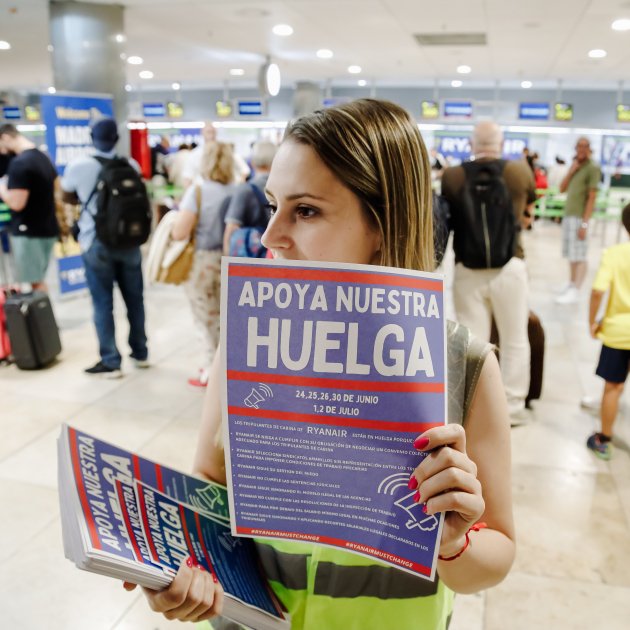 Comença una altra de moltes jornades de vaga a Ryanair dels tripulants de cabina d'aquest mes de juliol. En total s'han convocat 12 jornades de protestes aquest mes de juliol que comportaran aturades de 24 hores que es duran a terme del 12 al 15 de juliol, del 18 al 21 de juliol i del 25 al 28 de juliol en tots els aeroports espanyols on opera l'aerolínia. Un d'ells és l'aeroport d'El Prat, on fins al moment ja hi ha hagut 10 vols cancel·lats i una quinzena de retards.