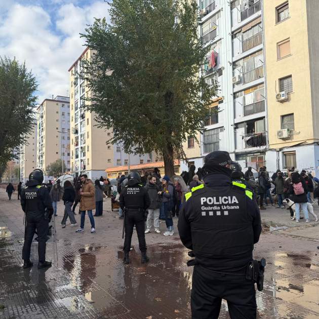 Important desplegament d’agents de la Guàrdia Urbana de Badalona, amb equips antiavalots, a la zona on s’han concentrat, per segona nit seguida, les persones que van ser desallotjades de l’antic institut B9, dimecres a primera hora. Els agents han envoltat la plaça, just davant de l’espai que havia estat ocupat durant dos anys, per tal de controlar l’acampada que, segons la policia, s’ha de desmuntar per qüestions d’insalubritat. A més, els agents han demanat que apaguessin les fogueres que les persones, la majoria homes en situació irregular al país, tenen per escalfar-se. Les primeres accions policials han estat rebudes amb crits per part del centenar de persones que són a la zona i que, per segona nit, han dormit al ras després de ser desallotjades d’aquest antic institut entre els barris del Carme i de Sant Roc, a Badalona.
